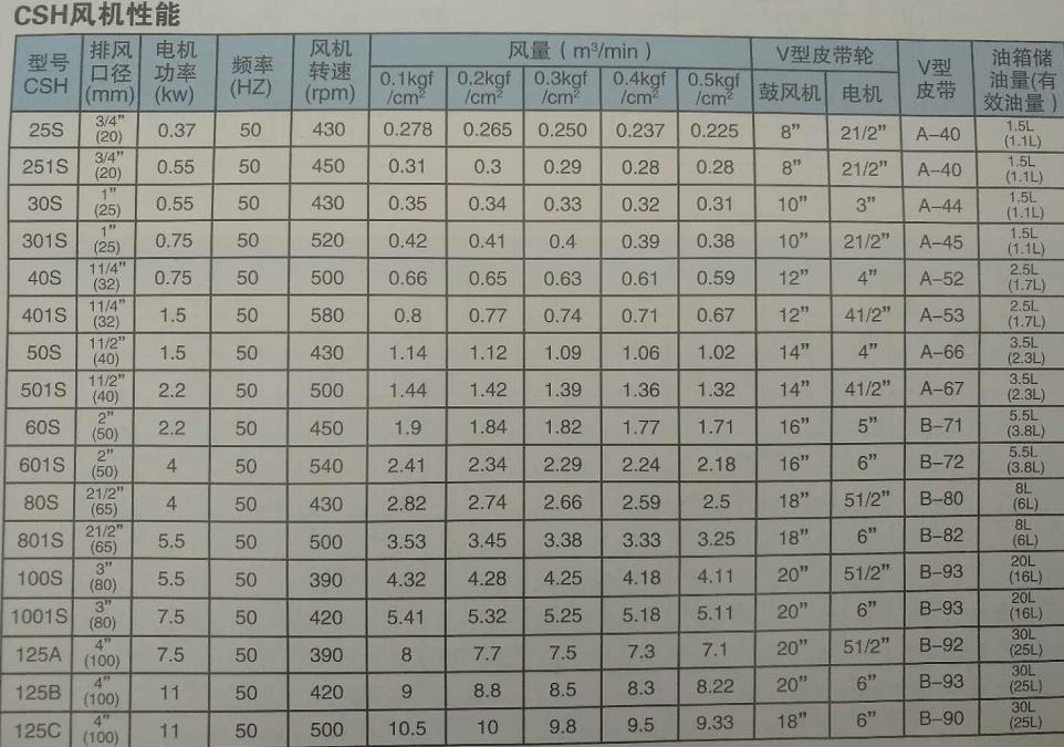 通過本小節的介紹您是否對風量和風壓有了一定的了解,下面我們通過回轉風機的參數表從數據上看出兩者之間的關系!
